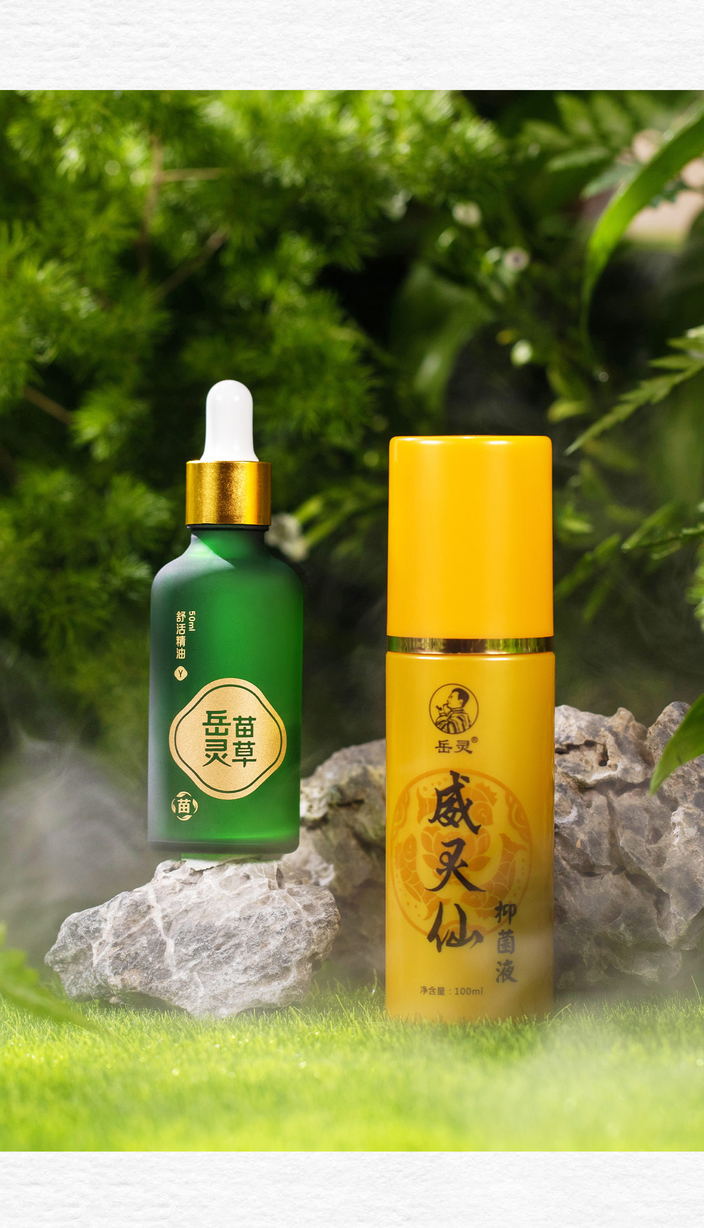 为印氏岳灵植物护理用品拍摄系列产品图片和电商页面设计。