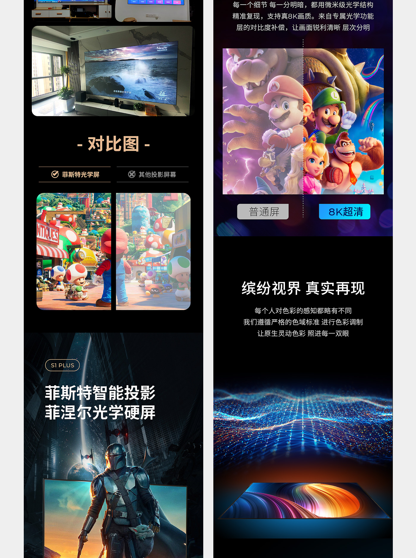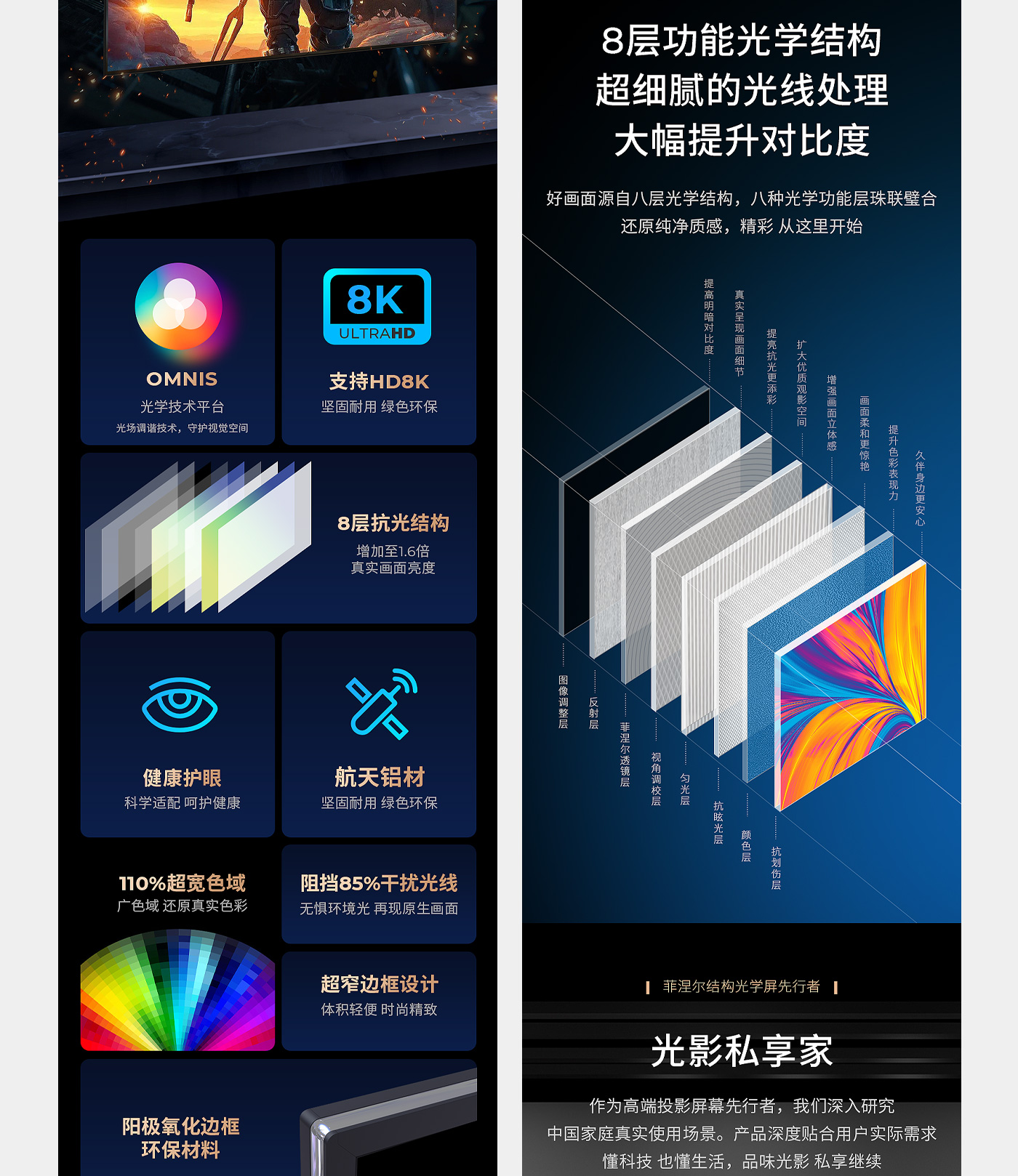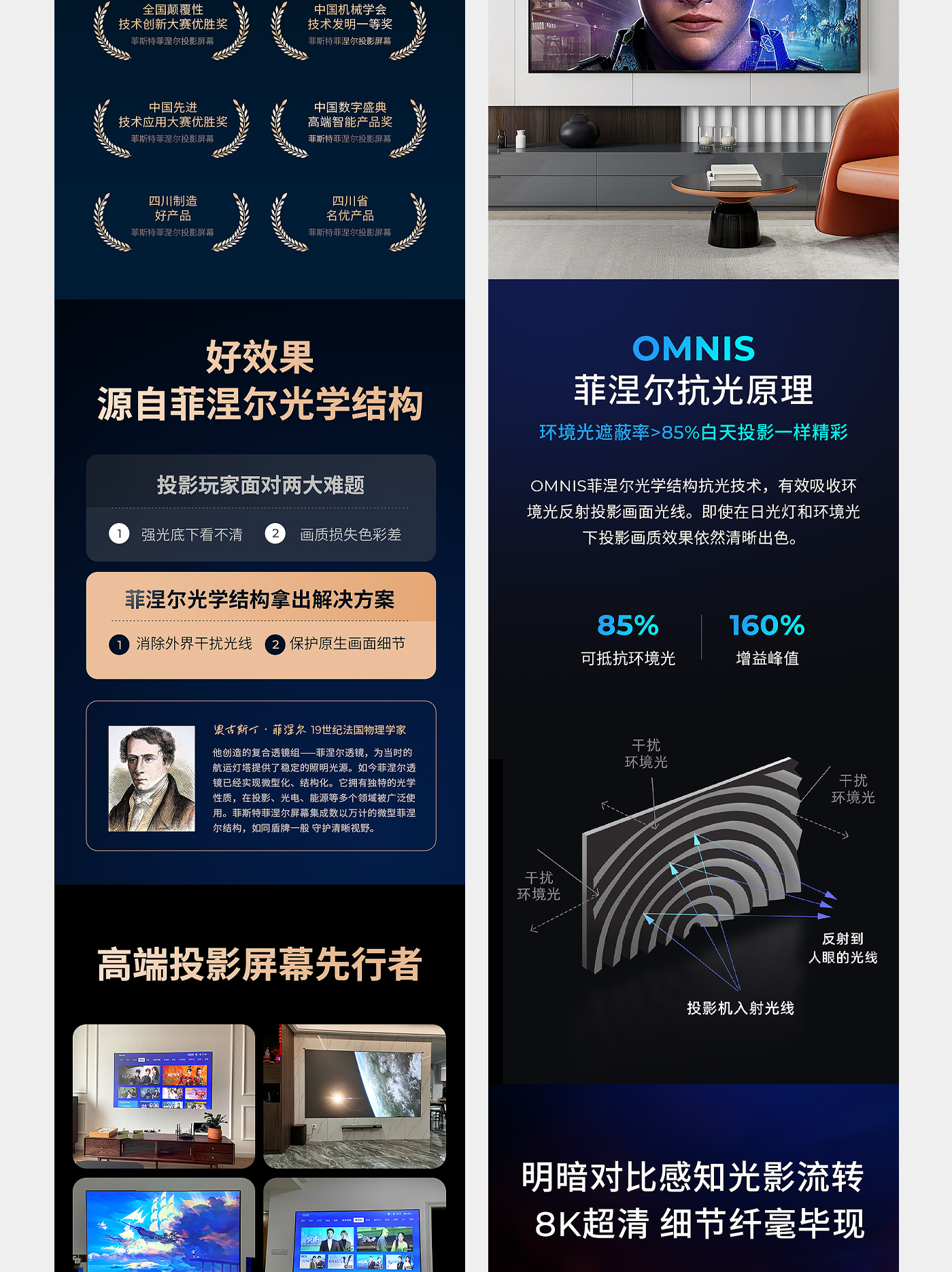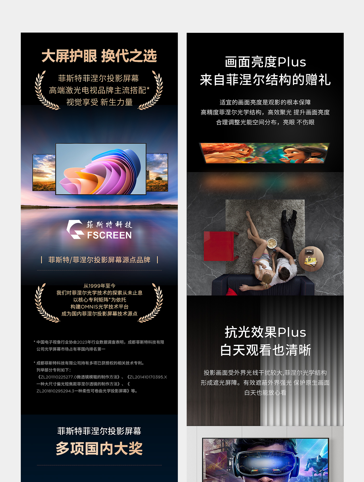 菲斯特科技成立至今,始终专注光学技术的研究、开发及产业化,截至目前已经拥有超短焦激光电视菲涅尔屏、中长焦智能投影菲涅尔屏、功能光学膜及超大尺寸超精密模具等多项光学领域相关的技术产品,并被应用于科研、商用(影院、展览展示、虚拟仿真、教育等)、家用等多个领域。