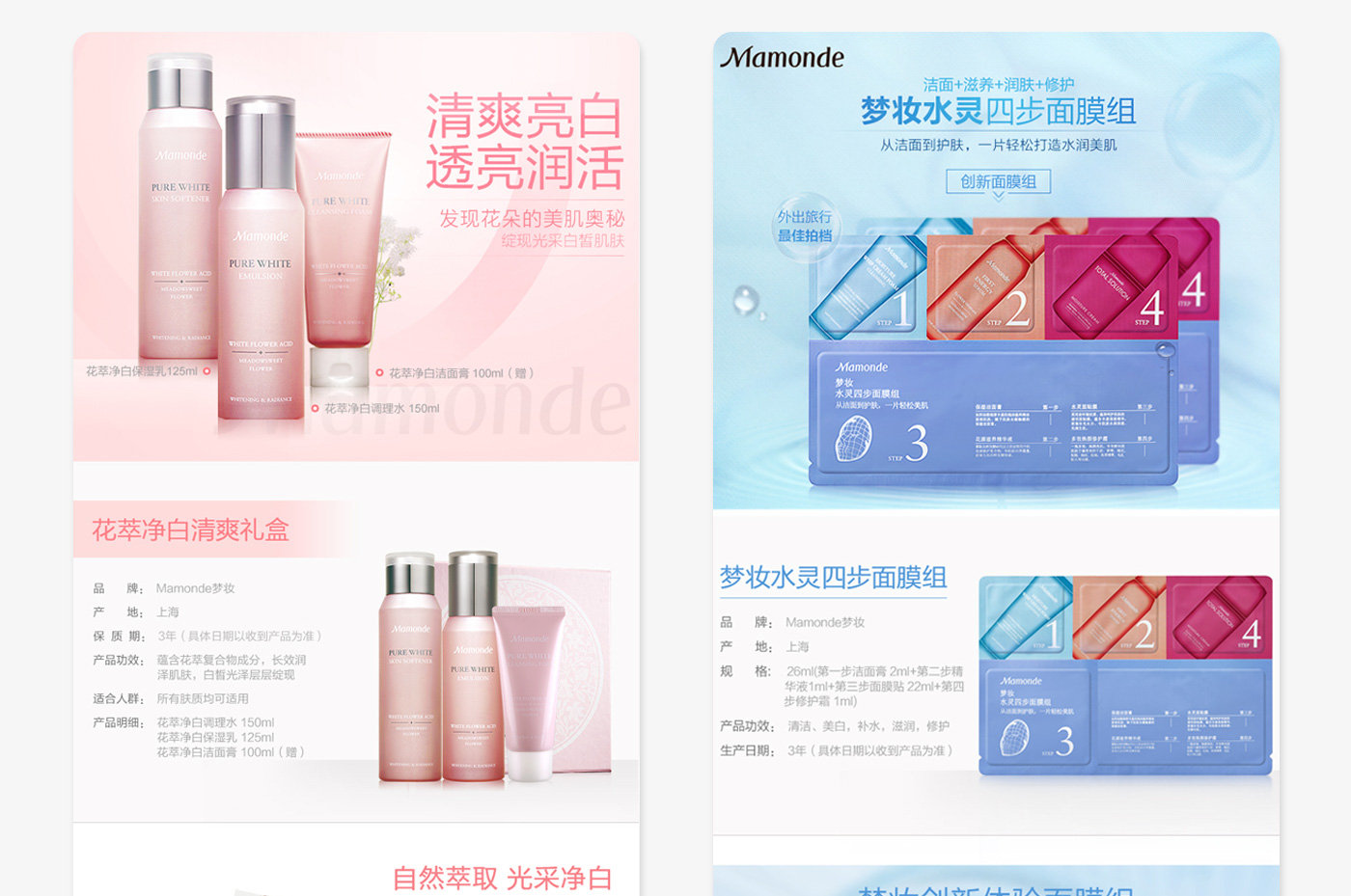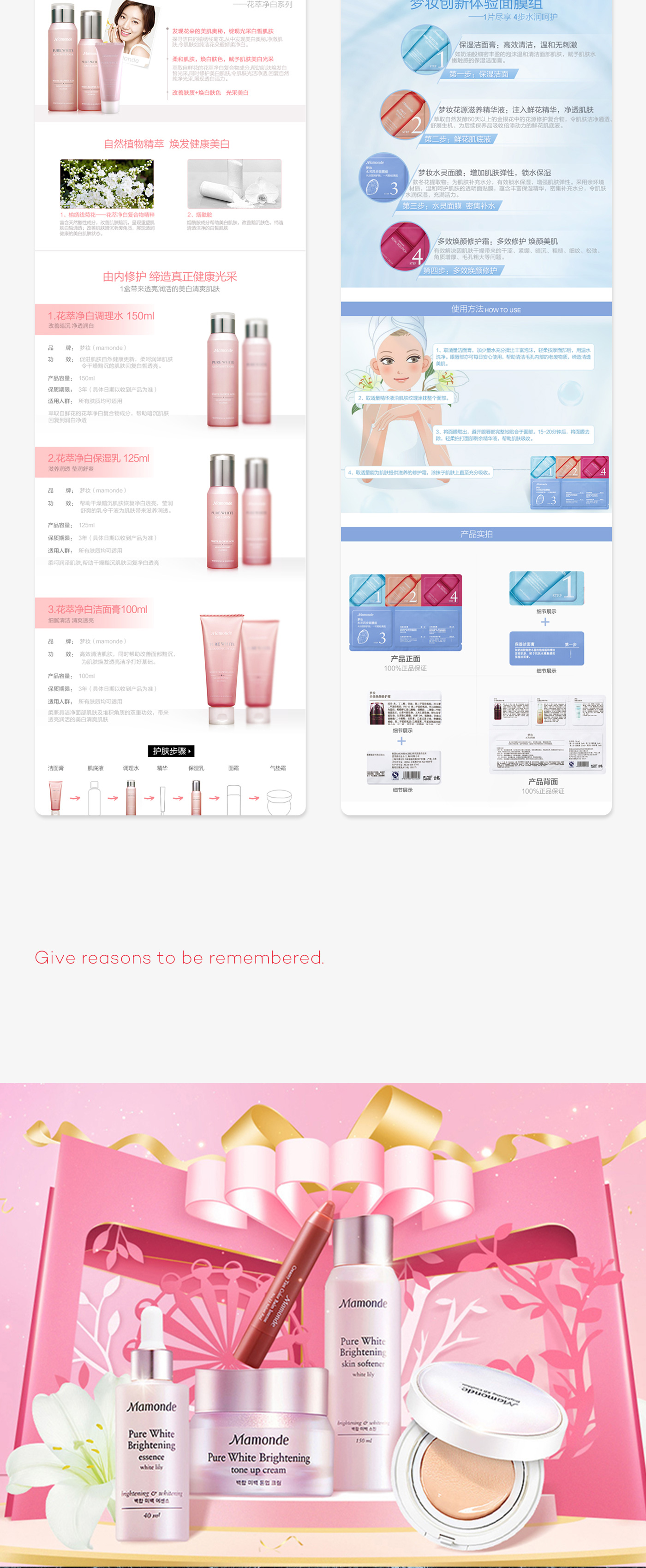 梦妆 电商全案设计 | 详情页设计 梦妆是韩国的护肤品品牌,1991年10月梦妆在韩国上市,针对追求自我的当代女性而设计。韩国品牌凭借其不断创新的企业理念及产品研发实力,吸引了众多新时代女性,并获得了空前的成功。 | |||||||||